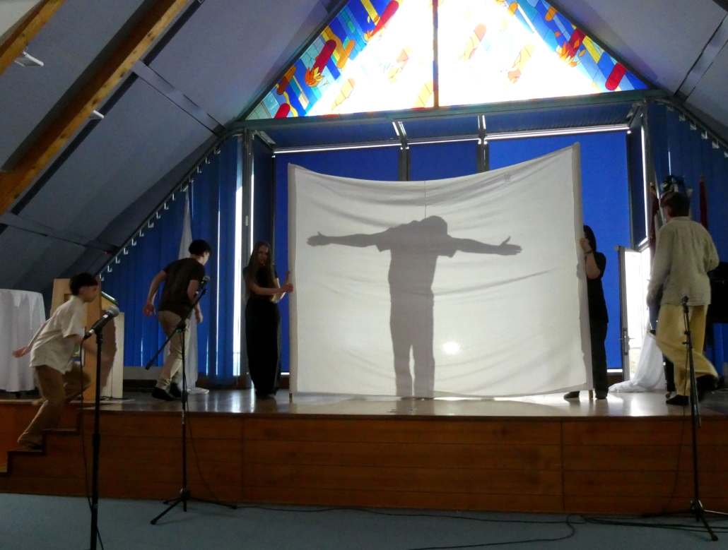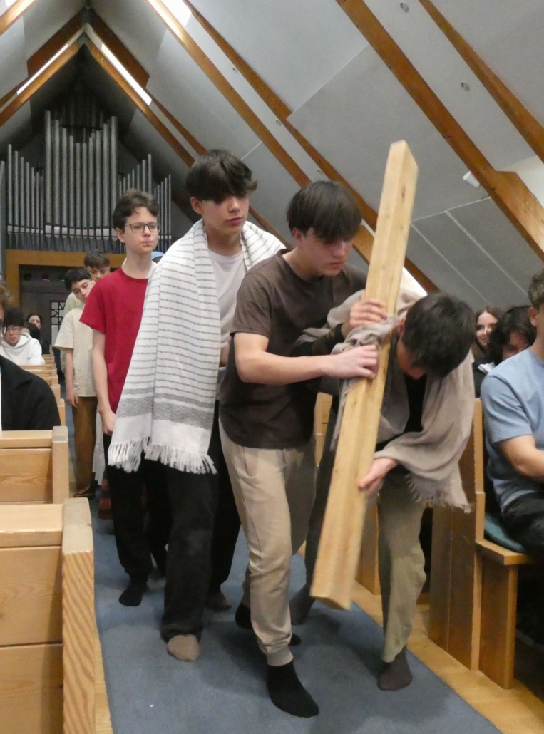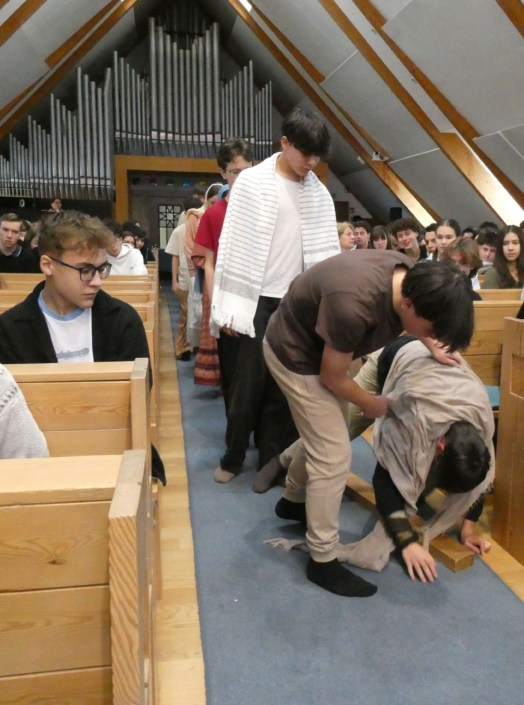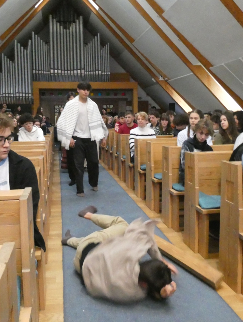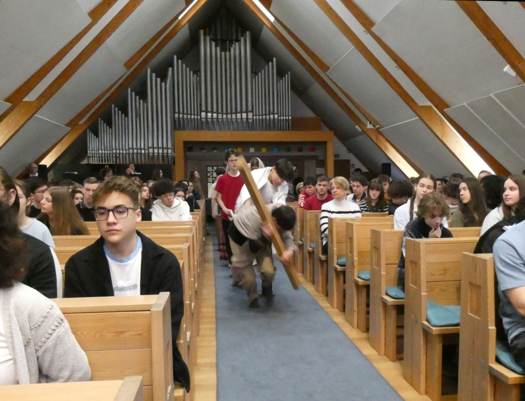 Március 30-án, a hétfői áhítaton a 8.b osztály diákjai megrendítő előadásában átélhettük egy szeletét Jézus Krisztus, Isten Fia mindannyiunkért tett áldozatának – szenvedésének, halálának és feltámadásának történetét, a Passiót.