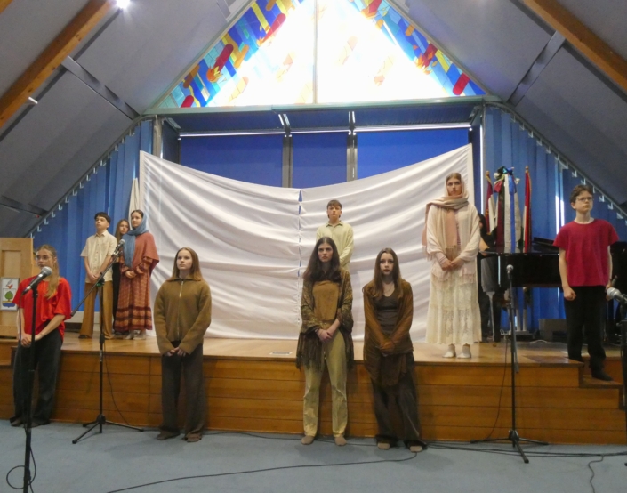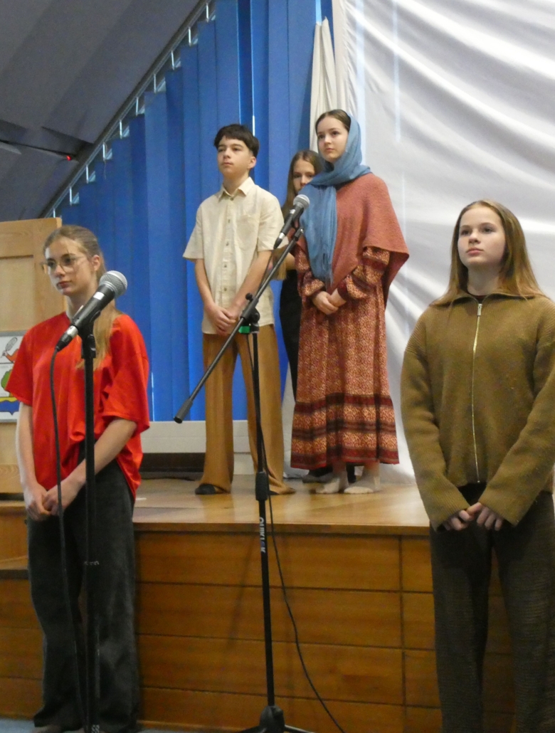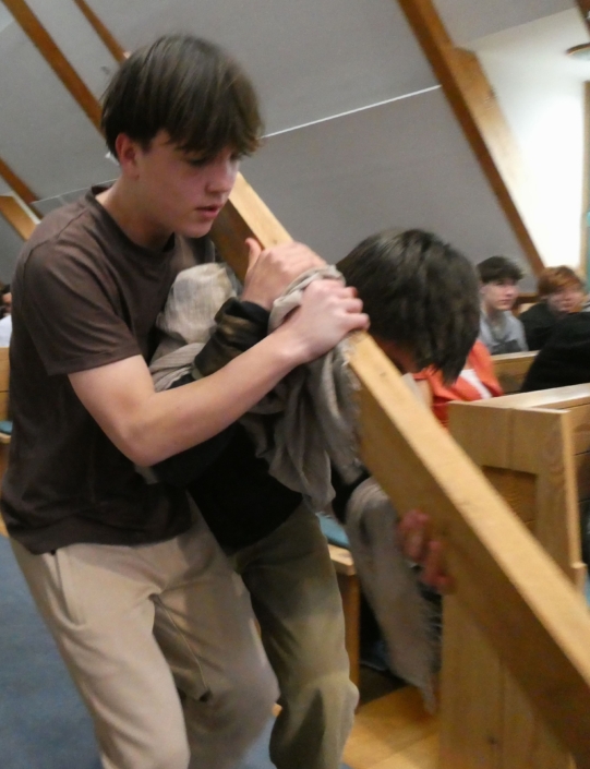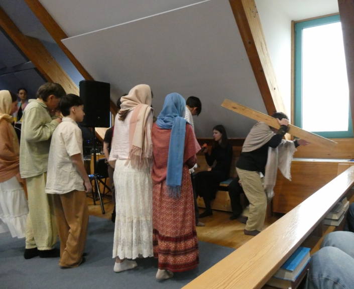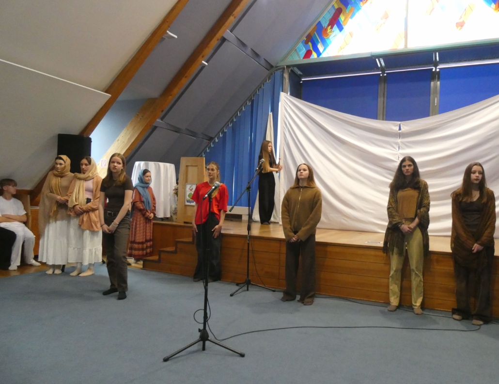 Március 30-án, a hétfői áhítaton a 8.b osztály diákjai megrendítő előadásában átélhettük egy szeletét Jézus Krisztus, Isten Fia mindannyiunkért tett áldozatának – szenvedésének, halálának és feltámadásának történetét, a Passiót.